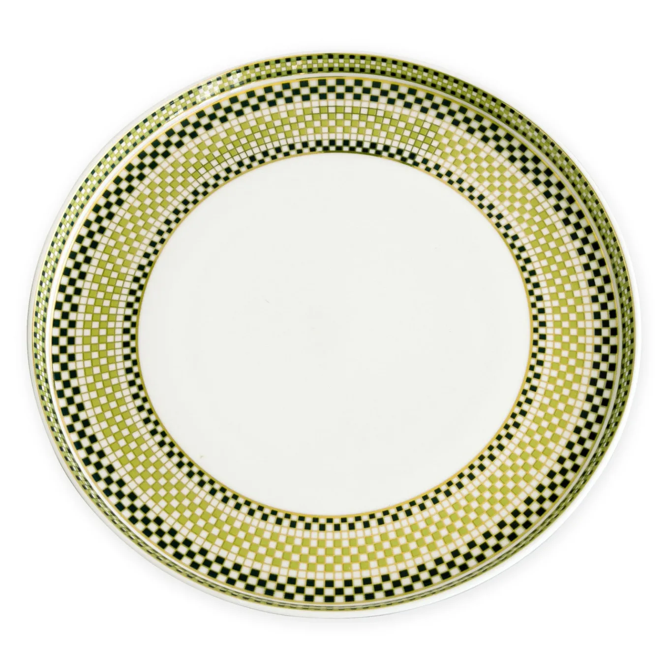 Refined style for elegant dining. The CERAMIC Ravenna Dinner Plate Set of 4 in green & gold is crafted in durable ceramic with a rich glazed finish and gleaming gold border. Perfectly sized for entrees or special-occasion meals, these plates elevate any table setting with timeless sophistication.