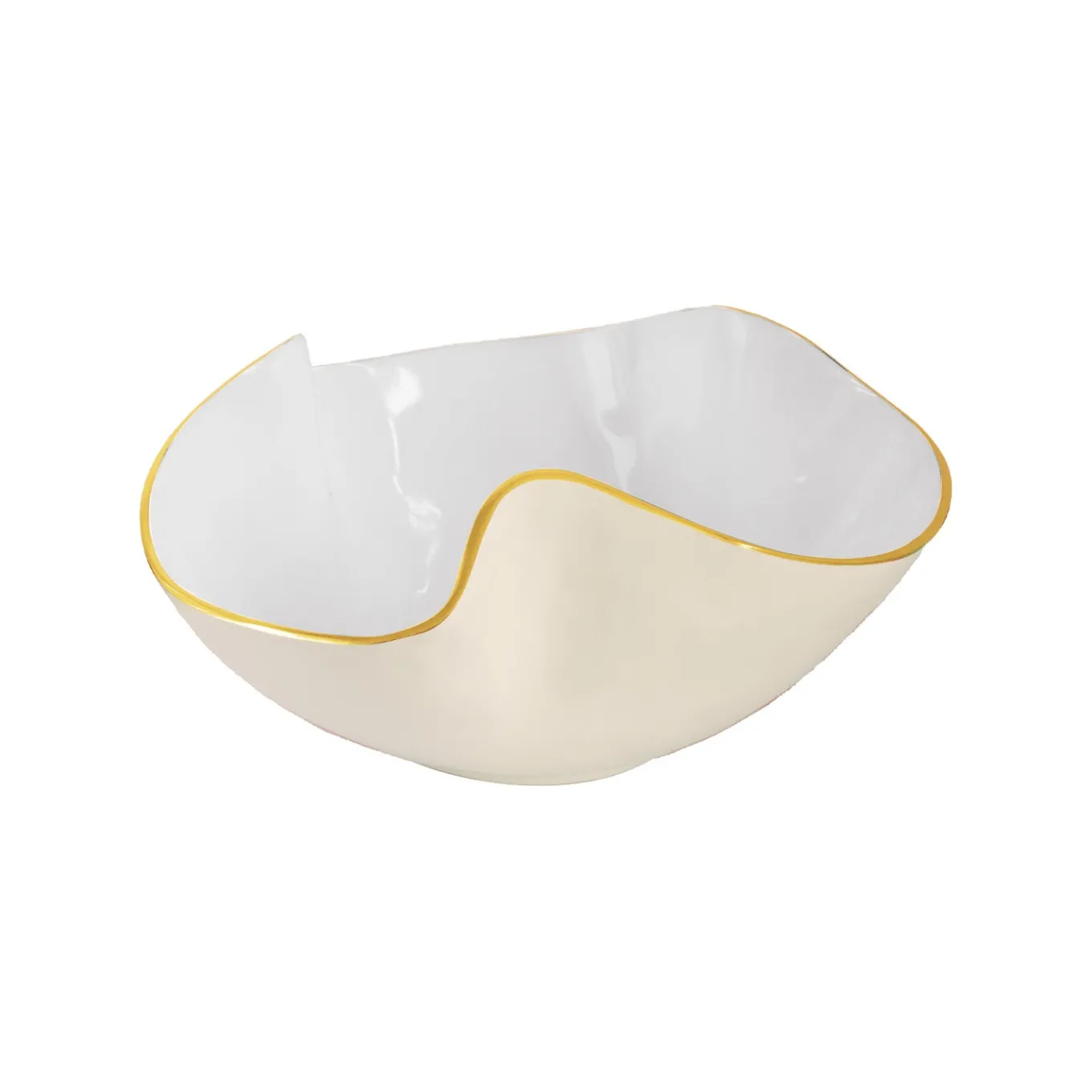A luminous centerpiece in Cream and White, the ENCANTO Aries Medium Bowl features graceful sculptural curves, a gleaming two-tone enamel finish, and gold-tone accents. Ideal for serving salads, pastas, or as a dramatic centerpiece.A thoughtful gift for weddings, bridal registries, housewarmings, or special occasions. Handcrafted using our signature sand-casting process and finished with a food-safe enamel. Made of eco-friendly aluminum alloy; dishwasher safe, will not chip or peel.