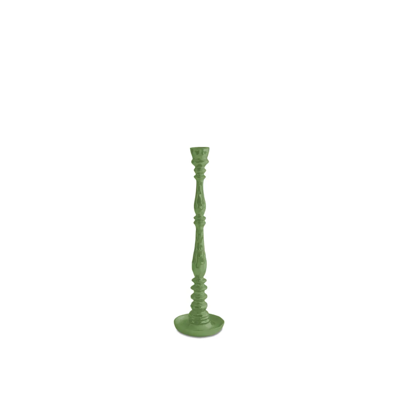 Tall and impressive, the vibrantly colored ENCANTO Crosby Candlestick Holders add a luminous touch of glamour to the home. An updated classic, the ENCANTO Crosby Small Candlestick Holder (Leaf Green) is notable for its thoughtful design, expert craftsmanship and stately proportions. Guaranteed to add a luxe look to any space, the candlestick holders can be topped with tapers in fun colors, and mixed and matched with other designs for a lively table. A great addition to the home, present them singly, in pairs, or in graduated sizes. Beatriz Ball’s intensely handmade products use eco-friendly and sustainable materials and are crafted by artisans who trace a heritage of metalworking for generations. Made of a top quality, easy-care, aluminum alloy with an enamel finish. This item is for decorative purposes only and is not food safe.