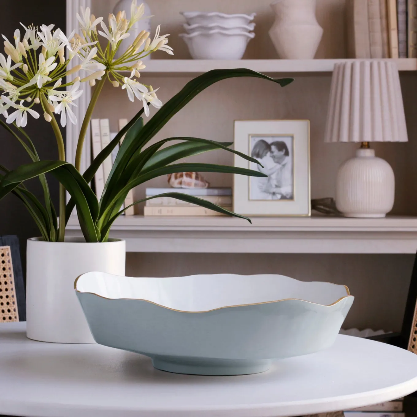 With its luminous two-toned enamel and gold accents, the ENCANTO Dakota Large Bowl (Slate and White) marries striking form with versatile color. The Slate tone—a soft, slate-inflected blue—adds depth and distinction to displays, offering a modern interpretation of a timeless palette.