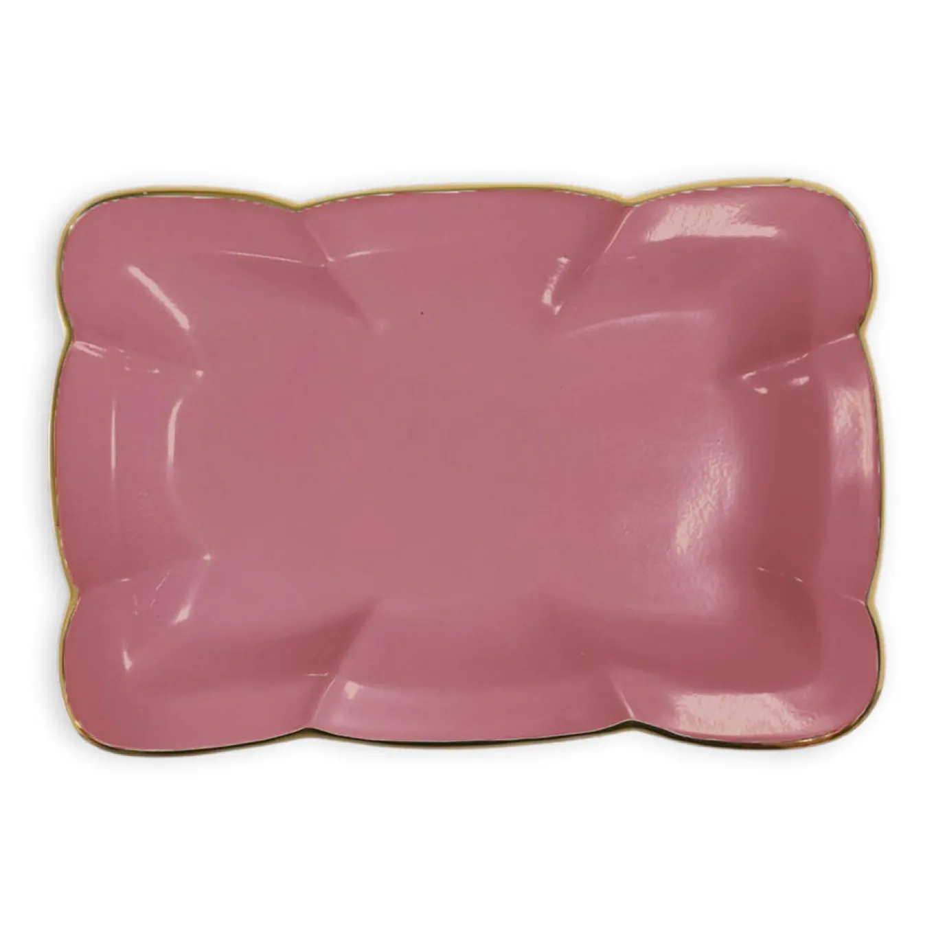 Notable for its practical size, elegant shape, and brilliant pink finish rimmed in gold, the ENCANTO Devon Medium Tray (Pink) is an awesome design that is as handy as it is decorative. Made for decorative use, the piece is great on the desk, bar, vanity or bedside table. The ENCANTO Devon pieces are all about classic shapes, re-invented in lively colors. Fashionably tailored, ENCANTO Devon items are fabulous gift items for brides, and perfect for anyone who loves to decorate. On trend, their beautiful designs with curving forms add grace and sophistication to any setting. Beatriz Ball’s intensely handmade products use eco-friendly and sustainable materials and are crafted by artisans who trace a heritage of metalworking for generations. Made of a top quality, easy-care, aluminum alloy with an enamel finish. This item is for decorative purposes only and is not food safe. Dishwasher safe.