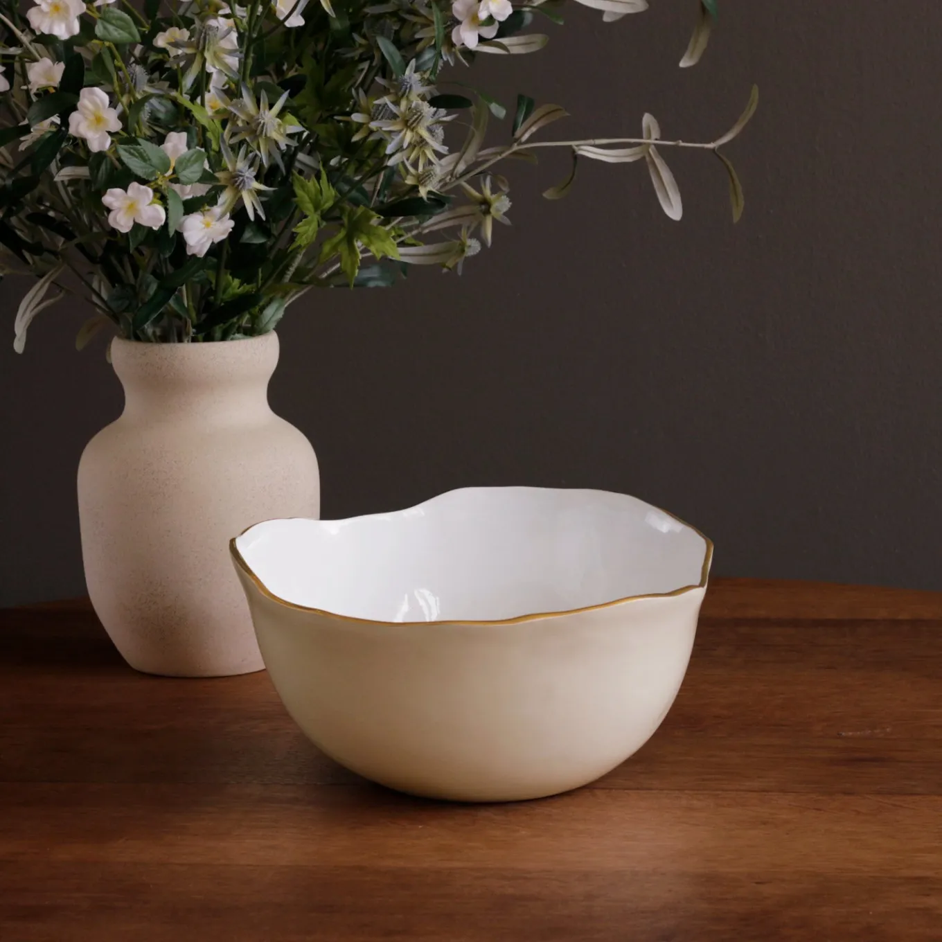 Our ENCANTO Osaka Large Bowl (Cream and White) embodies uncomplicated and straightforward design–with unmistakable Beatriz Ball flair. With its great depth, the bowl is perfect for tossing salads, passing around popcorn on movie night, and makes a striking centerpiece. A welcomed gift! Deep and versatile, Beatriz Ball’s Osaka large enameled metal bowl coordinates with other ENCANTO pieces and is equally at home with your casual serveware or dressed up for a party. Notable for its simply elegant shape, and brilliant two-tone finish rimmed in gold, the ENCANTO Osaka Large Bowl (Cream and White) is an awesome design that is as practical as it is decorative. Combine with other ENCANTO pieces for a sensational set. ENCANTO Osaka pieces are fabulous gift items for brides, and perfect for anyone who loves to entertain or decorate. On trend, their beautiful designs with curving forms add grace and sophistication to any setting. Beatriz Ball’s intensely handmade products use eco-friendly and sustainable materials and are crafted by artisans who trace a heritage of metalworking for generations. Made of a top quality, easy-care, aluminum alloy with a food safe enamel finish. Dishwasher safe.