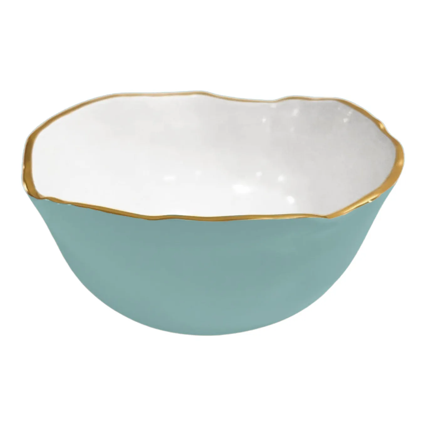 Our ENCANTO Osaka Large Bowl (Turquoise and White) embodies uncomplicated and straightforward design–with unmistakable Beatriz Ball flair. With its great depth, the bowl is perfect for tossing salads, passing around popcorn on movie night, and makes a striking centerpiece. A welcomed gift! Deep and versatile, Beatriz Ball’s Osaka large enameled metal bowl coordinates with other ENCANTO pieces and is equally at home with your casual serveware or dressed up for a party. Notable for its simply elegant shape, and brilliant two-tone finish rimmed in gold, the ENCANTO Osaka Large Bowl (Turquoise and White) is an awesome design that is as practical as it is decorative. Combine with other ENCANTO pieces for a sensational set. ENCANTO Osaka pieces are fabulous gift items for brides, and perfect for anyone who loves to entertain or decorate. On trend, their beautiful designs with curving forms add grace and sophistication to any setting. Beatriz Ball’s intensely handmade products use eco-friendly and sustainable materials and are crafted by artisans who trace a heritage of metalworking for generations. Made of a top quality, easy-care, aluminum alloy with a food safe enamel finish. Dishwasher safe.