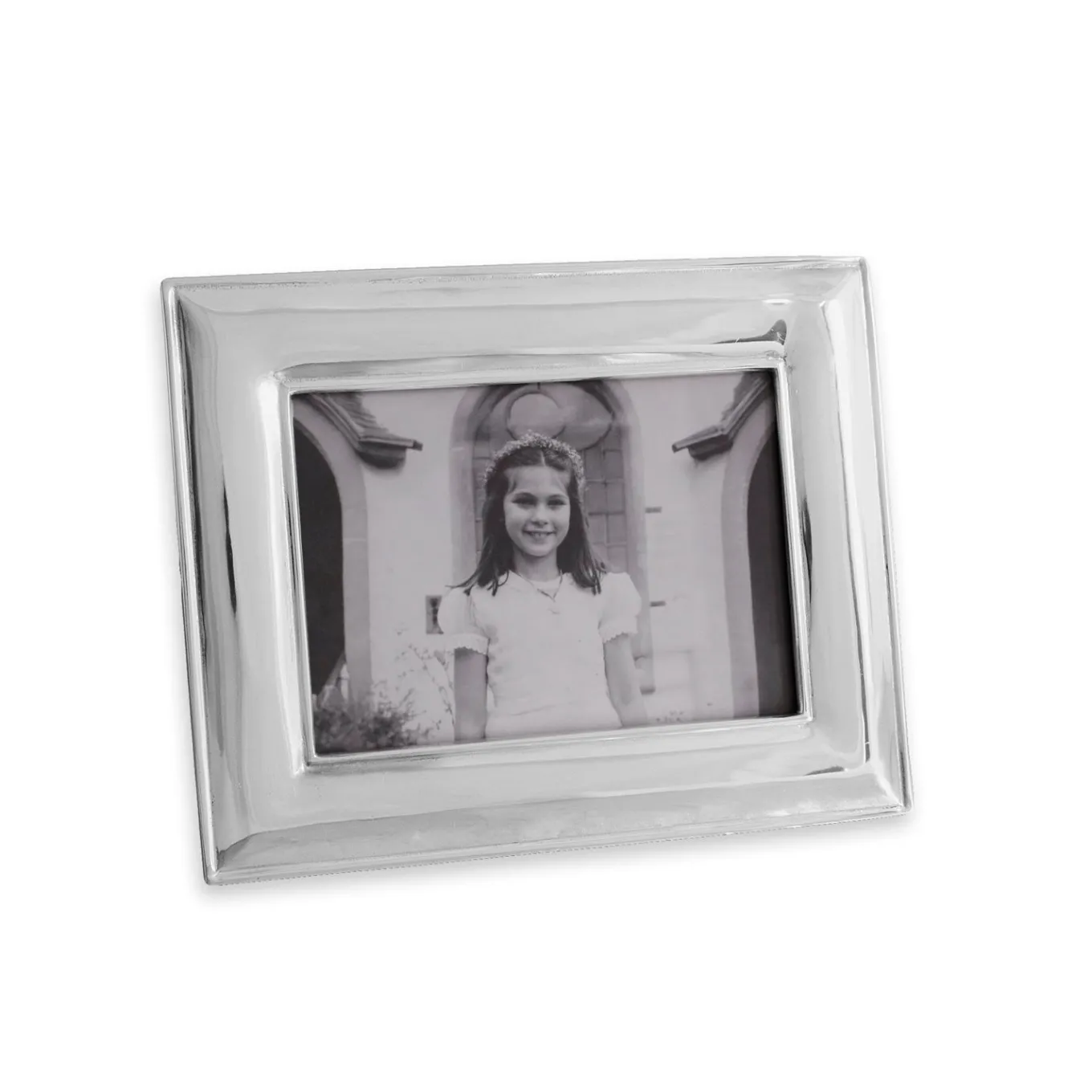 The Charlotte 5×7 Frame in hand-polished metal features a timeless profile and luminous finish; designed to display vertically or horizontally.