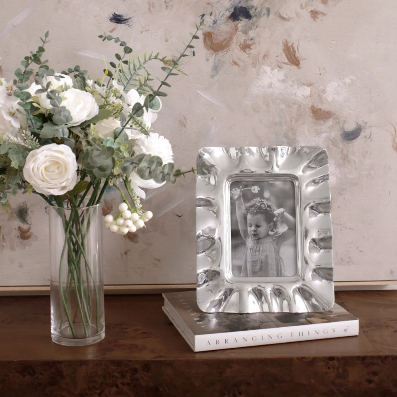 Enduring artisanship. The Beatriz Ball FRAME Vento 5 x 7 decorative frame shows off your favorite photo in shimmering, sophisticated, hand-polished surroundings. Can be displayed vertically or horizontally. Sophisticated styling and superior craftsmanship makes this a perfect gift for someone special. Made of an FDA safe, easy-care, oven and freezer friendly aluminum alloy. Tarnish free.