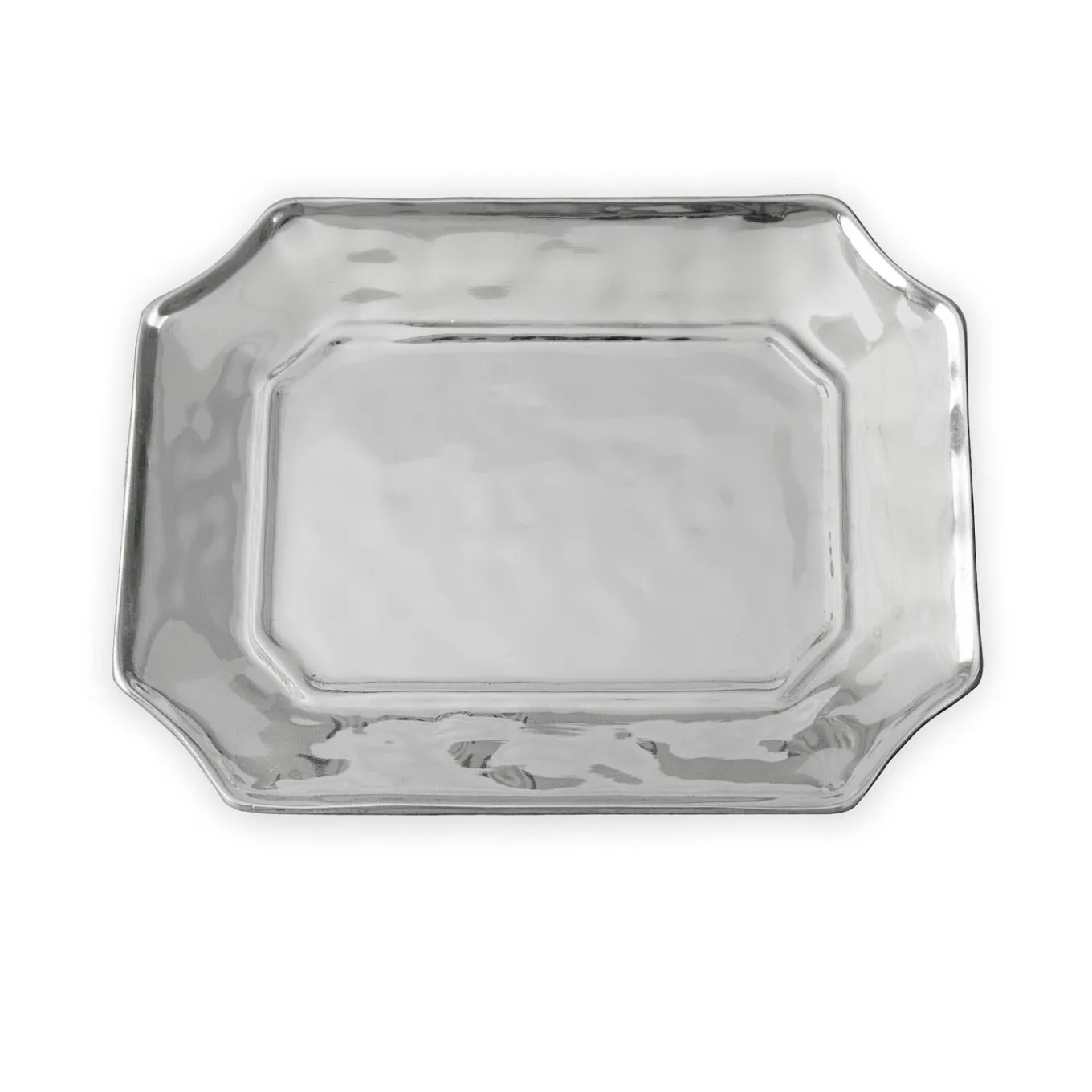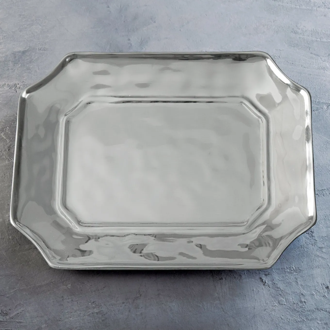 The Beatriz Ball GIFTABLES Soho Lucca Rectangular Tray decorative tray makes a perfect gift, handy metal serving tray, or eye-catching accent piece. From Beatriz Ball’s popular Giftables Collection; handmade and artfully designed items at irresistible prices. Packaged in a lovely gift box! Anyone on your gift list would love to receive this elegant and versatile GIFTABLES tray with distinctive Soho Lucca styling. A handsome, multifunctional piece featuring a hammered surface, notched corners, and a gently raised border, the tray is Beatriz Ball’s contemporary take on a classic design. Use for serving cream cheese and pepper jelly, cookies, or canapés. Great for the vanity, or powder room, too! An original design by Beatriz Ball, handmade of a top quality, FDA safe, easy-care, oven and freezer friendly aluminum alloy.