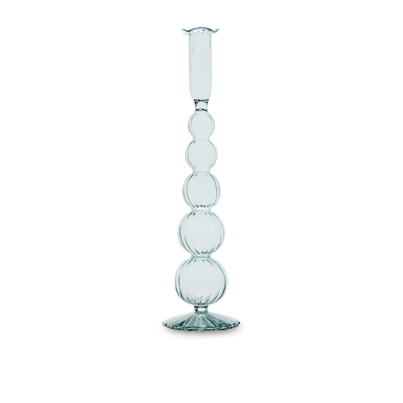 Opulence makes a comeback! Beatriz Ball celebrates the art of glassmaking with the luxurious GLASS Cambridge Collection. Fresh and lively, the Cambridge Olivia 12″ Candlestick Holder in light green features five stacked fluted globes of glass, flirty curves, and a jewel-like brilliance and clarity, all atop a delightful raised base. Just the thing to liven up the table, the candlestick holders can be topped with tapers in fun colors, and mixed and matched with Olivia and other Cambridge designs of various hues. Cross-merchandise with your favorite candle line. A great addition to your home, the candlestick holders are sold as a set of two. Made exclusively for Beatriz Ball.