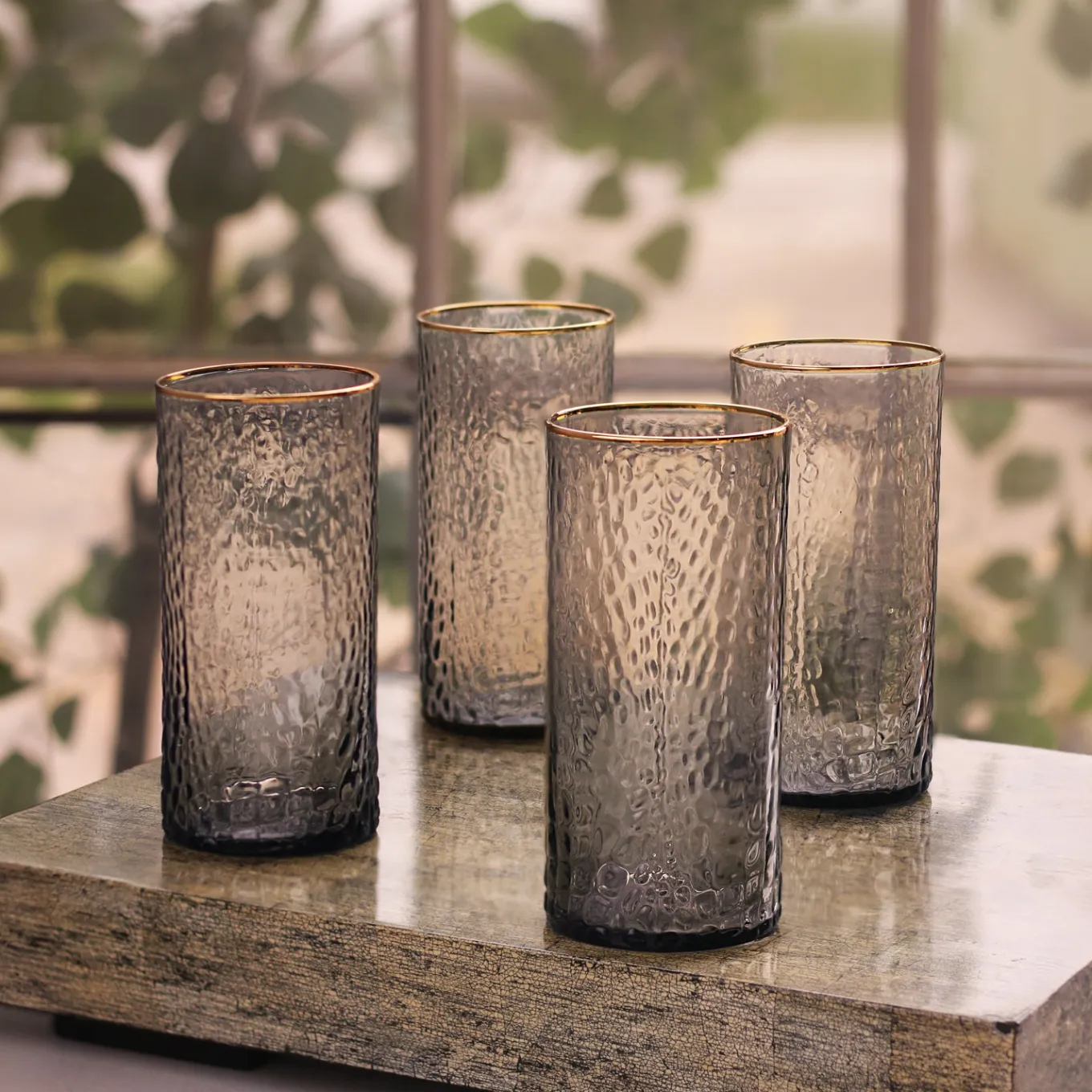 GLASS Croc Highball with Gold Rim Set of 4 (Smoke Grey)