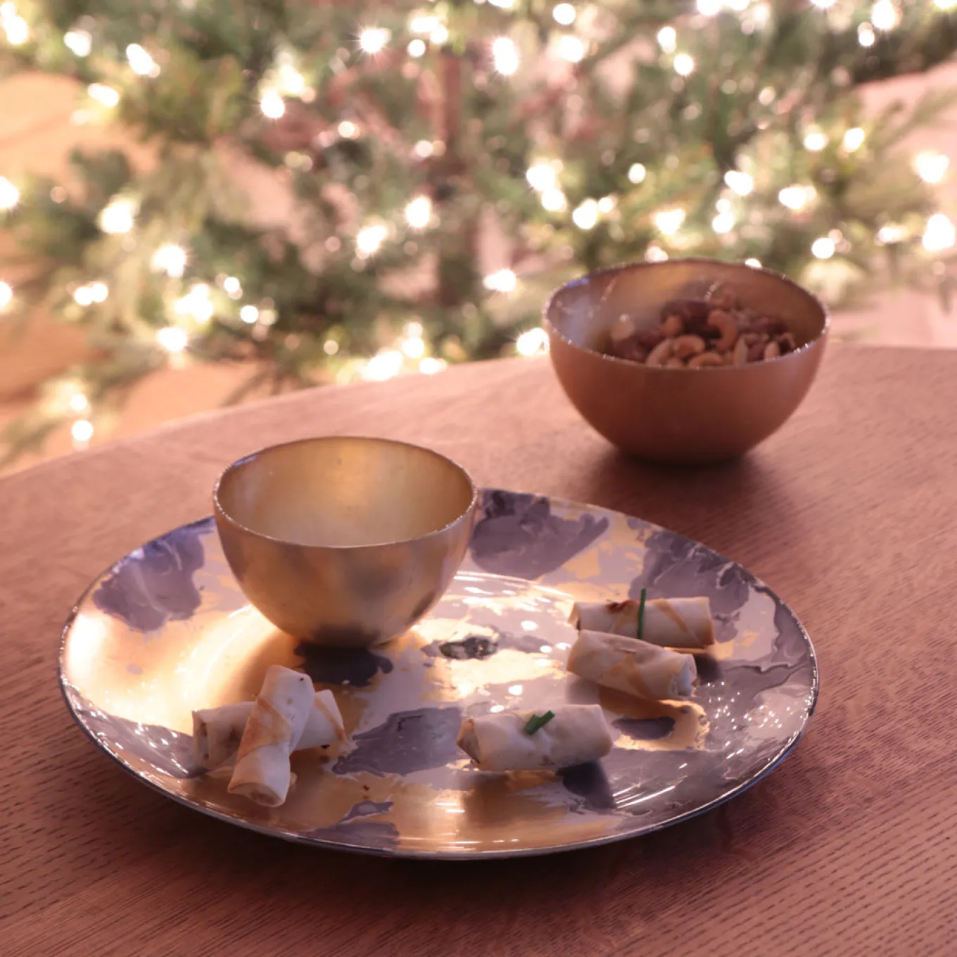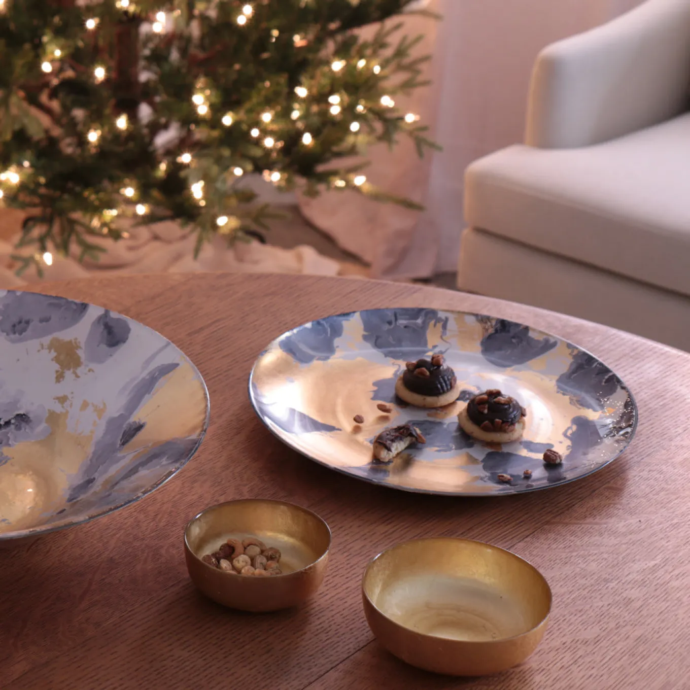 GLASS New Orleans Large Round Painted Platter (Blue & Gold)