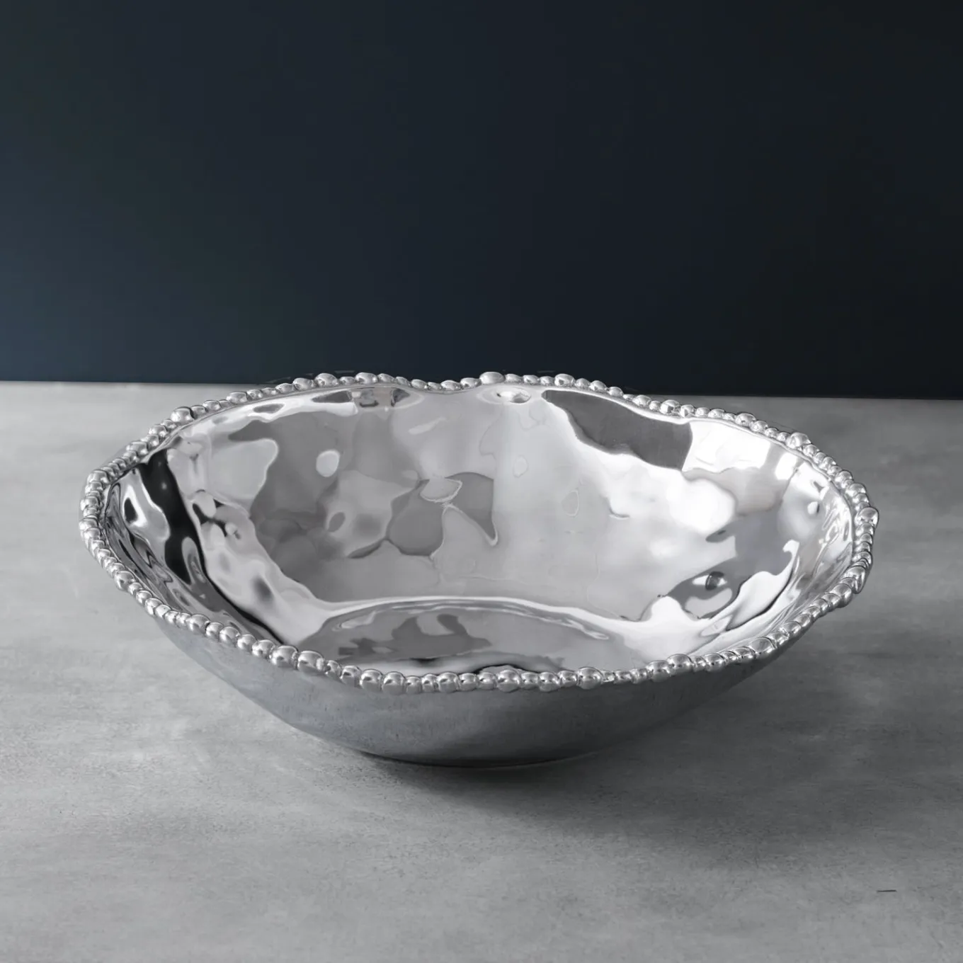 The life of the party! Rimmed in sparkling metallic beads, Beatriz Ball’s ORGANIC PEARL Nova large bowl has a fabulous shape and generous serving area. The large bowl is a must-have for entertaining. Great for fruit, salads, sides, snacks, and more. Makes a unique gift; ideal addition to the bridal registry. Beatriz Ball’s intensely handmade products use eco-friendly and sustainable materials and are crafted by artisans who trace a heritage of metalworking for generations. Made of a top quality, FDA safe, easy-care, oven and freezer friendly aluminum alloy