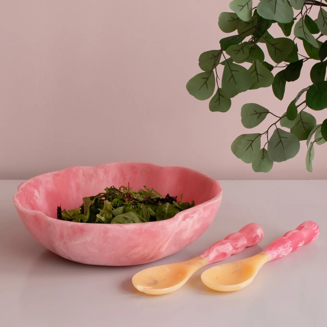 Add a bold splash of color with the RESIN Sorbet Salad Servers in Raspberry. Featuring a deep, cheerful pink hue and wavy design, they make tossing and serving salads or fruit a delight. Perfect for everyday dining or weekend entertaining.