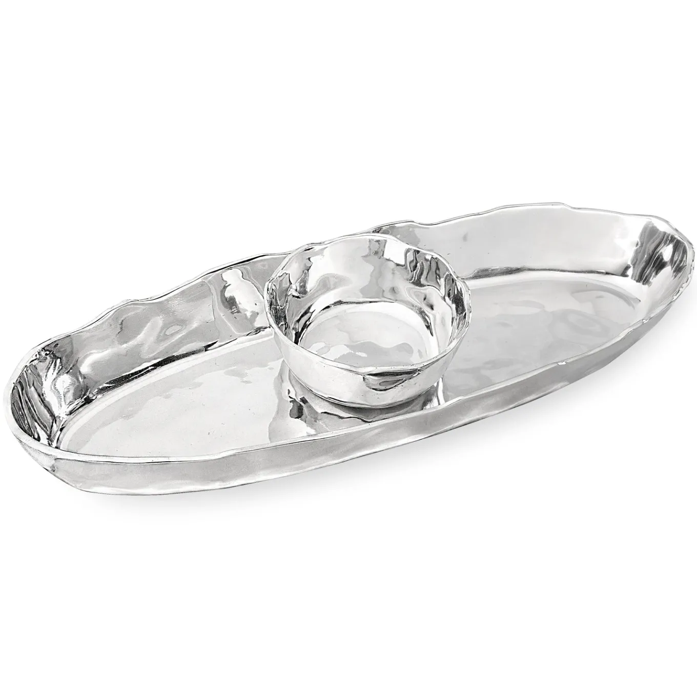 Two fabulous pieces in one fantastic design! With its compact size and rich surface details, the artisan-made SOHO Brooklyn Deep Oval Chip & Dip offers an elegant solution for small space entertaining. The striking sand-cast metal two-piece set offers timeless Beatriz Ball design, elegant practicality, and modern styling perfectly attuned to the good life. With its removable dip bowl, this stylish and versatile piece is ideal for serving fresh fruit, veggies, and crackers with your favorite dips and spreads. A multifunctional investment piece of heirloom quality. An original Beatriz Ball design handmade of an FDA safe, easy-care, oven and freezer friendly aluminum alloy. Tarnish free.