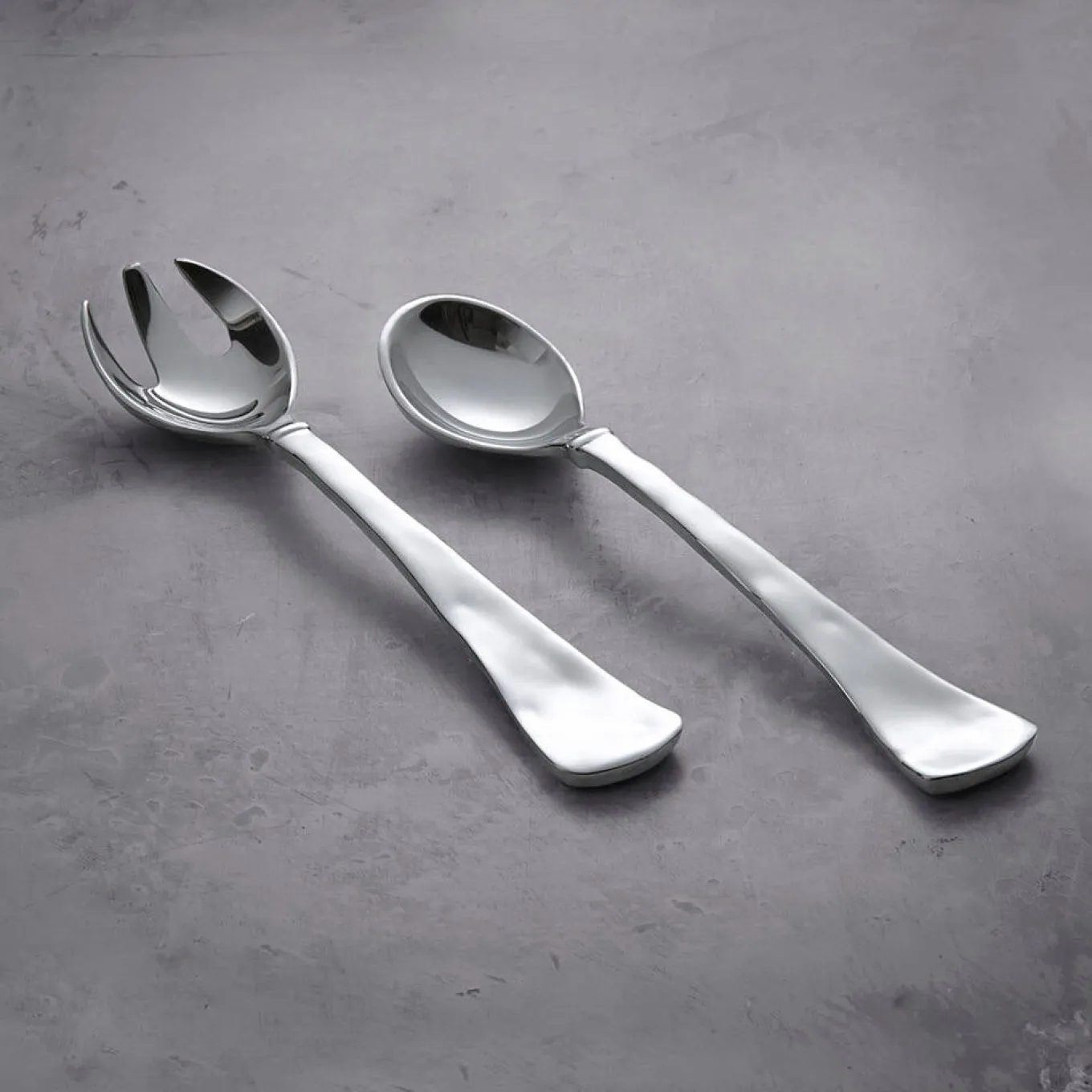 Gently hammered handles emphasize the handmade quality of the versatile Beatriz Ball SOHO metal salad servers.