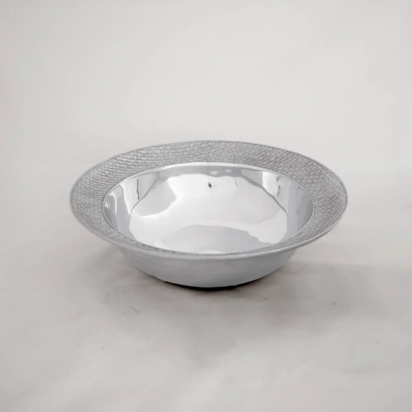 Pure luxe! Nassau, the capitol of the Bahamas, offers not only an exciting port-of-call and beautiful beachfront, but also a rich history and lively island culture. Beatriz Ball captures the spirit of the glamourous Caribbean destination in the newest Nassau selection, part of the popular Soho Collection featuring richly hand-polished metallic finishes. The ample SOHO Nassau Large Bowl features a gleaming and generous surface that evokes the good life. Presented in our signature metalware, the large bowl fits seamlessly with the brand’s handmade aesthetic, and blends perfectly with today’s trends for casual décor and entertaining. With a classic shape, great styling, and brilliant silvery surface, the tarnish free metal piece enhances anything you serve on it. This piece is perfect for salads and fresh fruit. Ideal addition to the kitchen island. Pair with other Nassau pieces for a striking curated tablescape. Beatriz Ball’s intensely handmade products employ eco-friendly and sustainable materials and are crafted by artisans who trace a heritage of metalworking for generations. An original Beatriz Ball design, sustainably handmade of a top quality, FDA safe, easy-care aluminum alloy. Hand wash and dry.