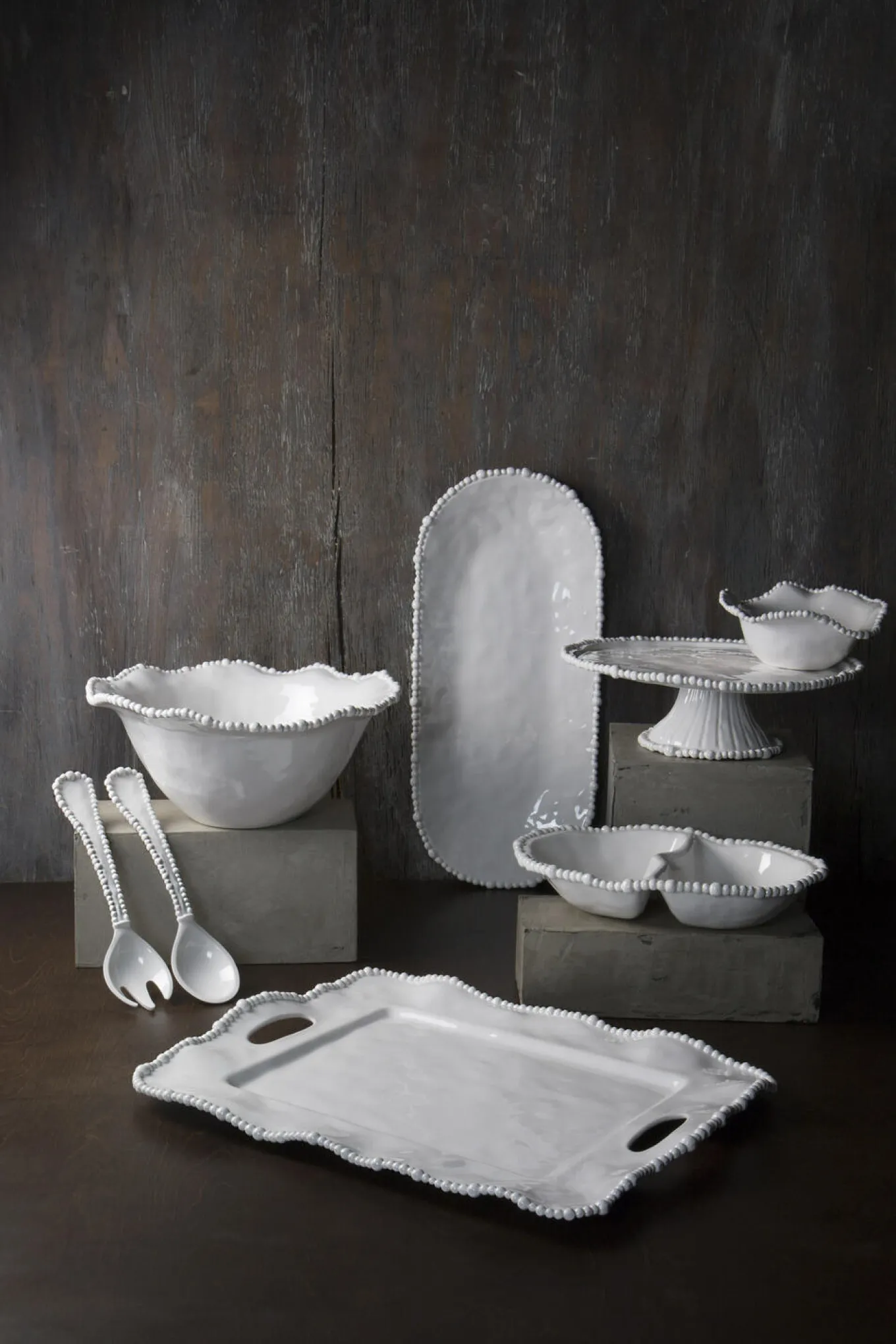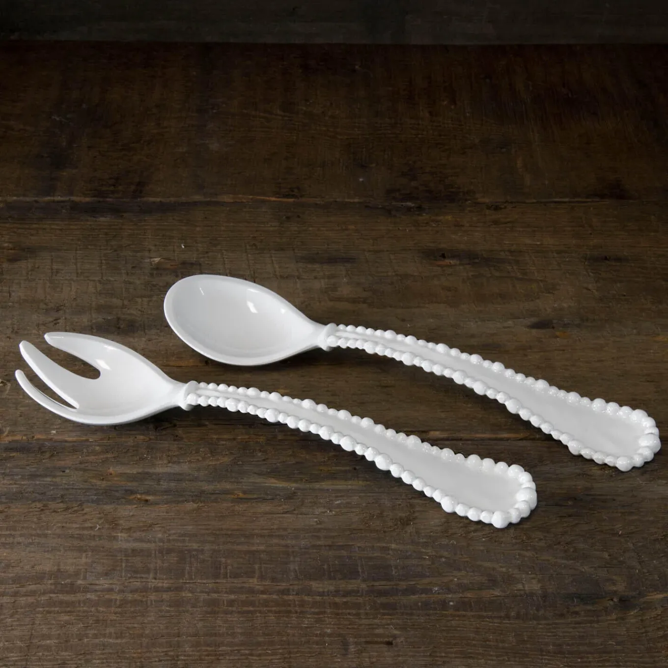 Melamine, reinvented. A brilliant white finish and pearl-rimmed styling make the Beatriz Ball VIDA Alegria Large Salad Servers (White) the ideal choice for bowls in this collection of luxury melamine. The attractive servers are made of high quality melamine for everyday enjoyment. Perfectly suited for indoor and outdoor entertainment, Alegria is a collection as joyful as its name. Mix and match with our other melamine items for a vibrant tablescape, or pair with our large white bowl for a great salad set. Decorative servers made of luxury melamine are always appreciated, so pair them with any bowls for a great gift combo. Dishwasher safe (top rack), heavy-weight, food safe, BPA and PABA free.