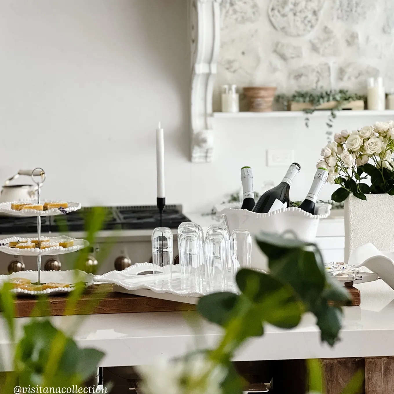 Selected as one of Oprah’s Favorite Things! An ample serving area and notched handles make the VIDA Alegria Rectangular Tray with Handles (White) a shining star in our innovative Alegria Collection, a luxury melamine line designed with distinctive Beatriz Ball flair. Fabulous for passing around snacks or drinks, the tray also makes a statement placed on the bar or kitchen island. Perfectly suited for indoor and outdoor entertainment, this Alegria tray is designed for everyday enjoyment. Pair the tray with other melamine pieces for a coordinated serving set, and a festive and vibrant table display. Pairs well with items from Beatriz Ball’s signature metal line, too. Having the substance, weight and appearance of ceramics, this white melamine tray is as beautiful as it is versatile. Makes a unique gift. Dishwasher safe (top rack), heavy-weight, food safe, BPA and PABA free.