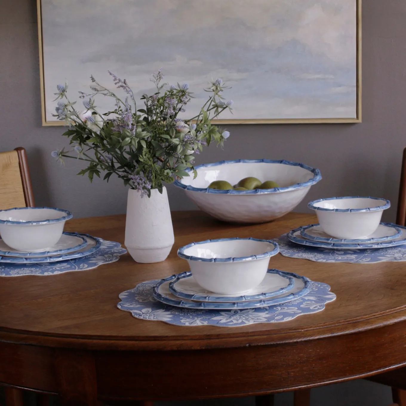 A classic with a twist. The VIDA Bamboo 7.5″ Cereal Bowl Set of 4 (White and Blue) is as versatile as it is stylish, with a brilliant white surface bordered by a blue bamboo-inspired rim. Perfect for cereals, soups, snacks, or dips, these bowls coordinate effortlessly with the VIDA Bamboo dinner and salad plates for a cohesive look.