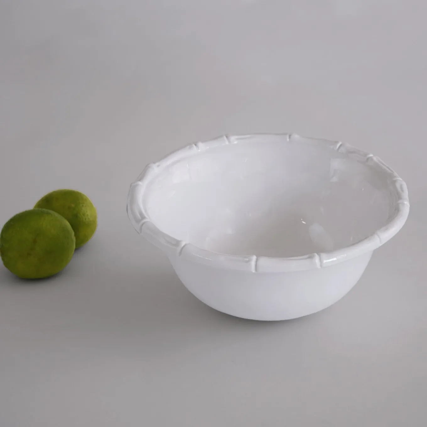 The VIDA Bamboo Cereal Bowl Set of 4 (White), is an essential item from Beatriz Ball’s VIDA Collection of luxury melamine. With a bamboo inspired rim and a brilliant overall white surface, the cereal bowl may be paired with other VIDA Bamboo dining pieces for a coordinated serving set. Sold in sets of four, use them to create a table setting with a carefree, but classy, Beatriz Ball twist! It looks great when sharing a table with Bamboo items from our signature metal line. We love it with our Bamboo flatware, too. The versatile bowl has the luster, heft and look of a ceramic piece, and makes a great snack, nut or dip bowl. Made of luxury melamine for everyday enjoyment, this piece is ideally suited for indoor and outdoor entertainment. Dishwasher safe (top rack), heavy weight, food safe, BPA and PABA free.