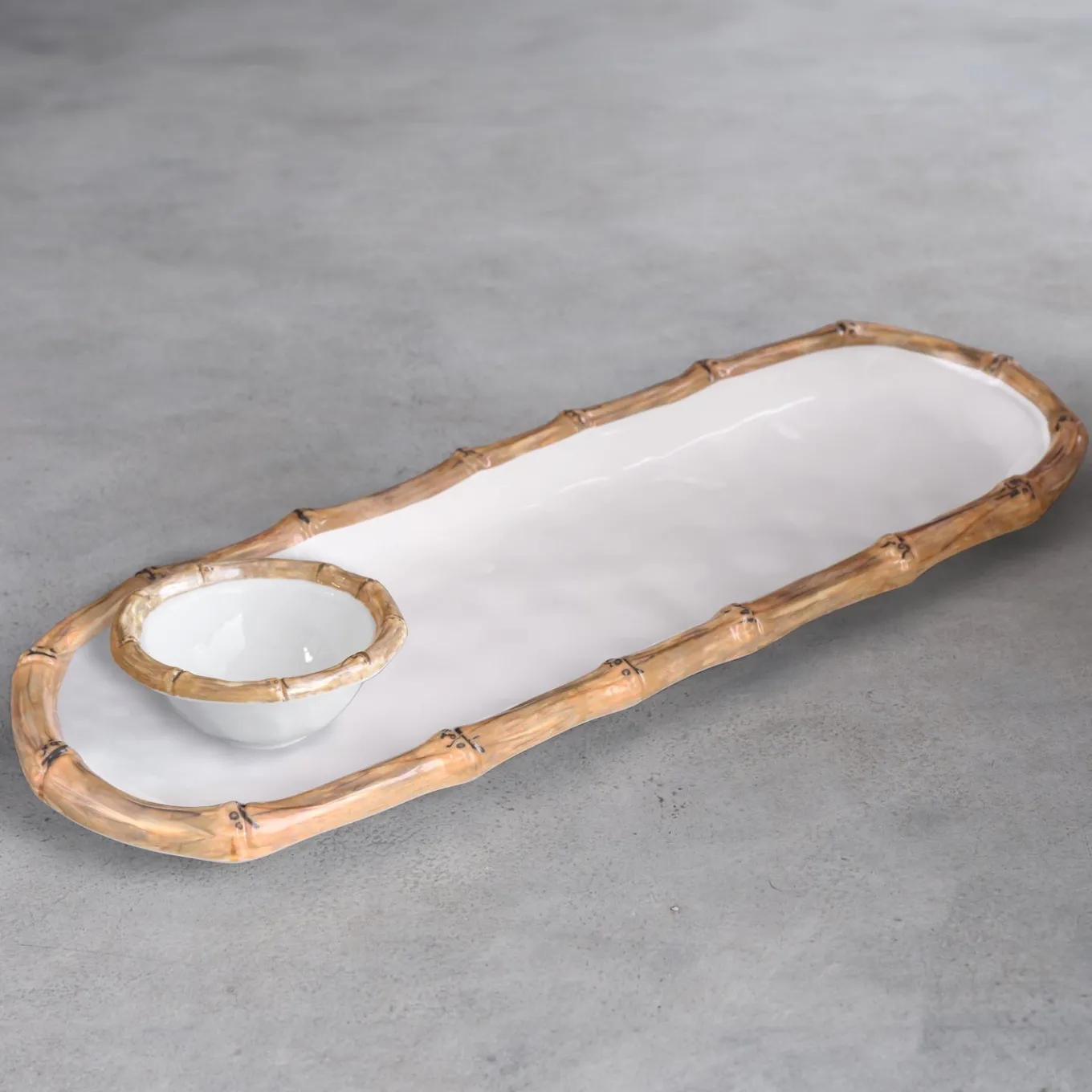 VIDA Bamboo Mini Dip Bowl (White and Natural)