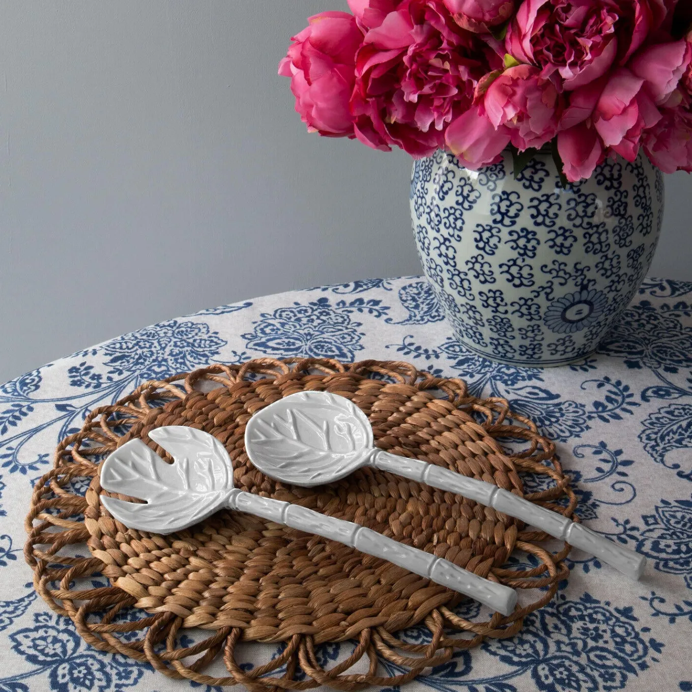 A garden delight in luxury melamine. With intricate detailed leaves as the salad fork and spoon, and naturalistic branches as handles, these VIDA Lettuce Large Salad Servers (White) are a great addition to any bowl. A natural when paired with Beatriz Ball’s luscious Lettuce Bowls. A lovely gift for the foodie in your life. Dishwasher safe (top rack), heavy-weight, food safe, BPA and PABA free.