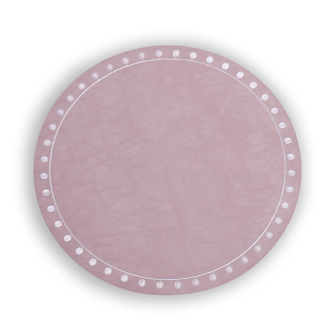 To the point! The VIDA Round Embroidered Dots 15.5″ Round Placemats Set of 4 (Pink and White) will give any table an instant makeover with joyful color and lively pattern of dots.