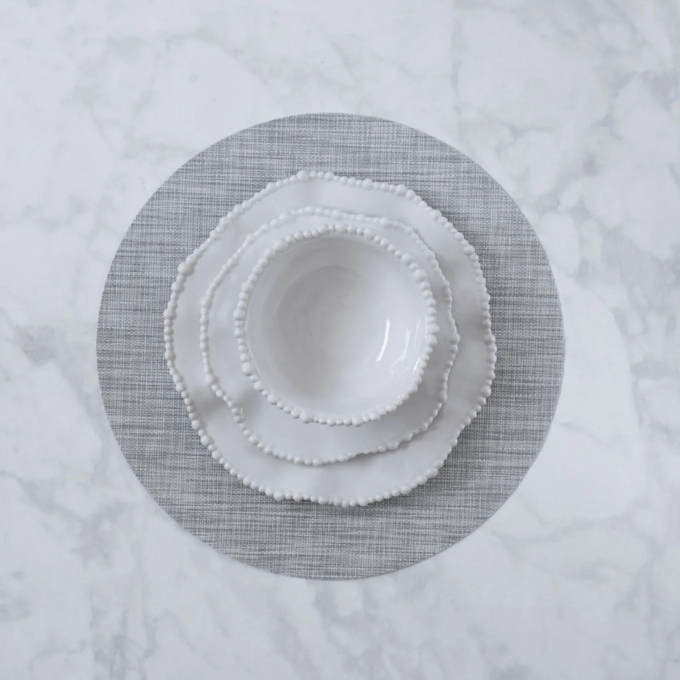 It’s hard to remain neutral about this dynamic grey placemat! Beatriz Ball’s VIDA Round Woven Placemats Set of 4 (Grey) will give any table a sophisticated makeover with its understated blend of color, pattern, and texture. Sold in sets of four, this eye-catching design in grey has the look of a handloomed piece, but with the durability and carefree quality you’ll love. Generously sized for a handsome look on your table. Pair them with our Easy Peasy napkins. Easy care, wash with soap and water. Made of eco-friendly, high quality, environmentally safe PVC. Phthalate free.