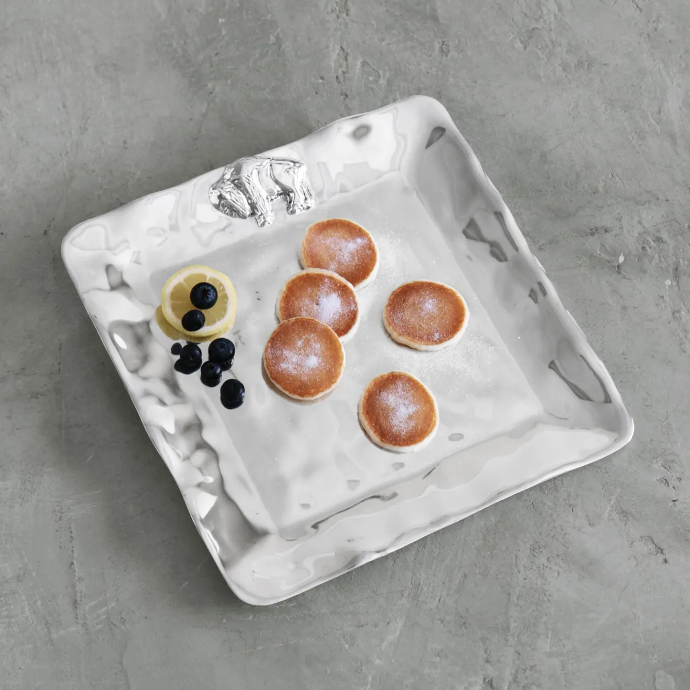 A buffalo roams in Brooklyn! Our SOHO Brooklyn Buffalo Square Medium Platter is adorned with the iconic image of the American bison. A brilliant, generous surface to inspire endless serving possibilities in spaces large, small, and in-between. Pair with the other SOHO Brooklyn pieces or items from our WESTERN Collection for a shimmering and varied tablescape. It makes a meaningful gift. Beatriz Ball’s intensely handmade products employ eco-friendly and sustainable materials, and are crafted by artisans who trace a heritage of metalworking for generations. Each piece a one-of-a-kind work of art, the brand provides authentic products made by–and made for–real people. An original design by Beatriz Ball, sustainably handmade of a top quality, FDA safe, easy-care, oven and freezer friendly aluminum alloy.
