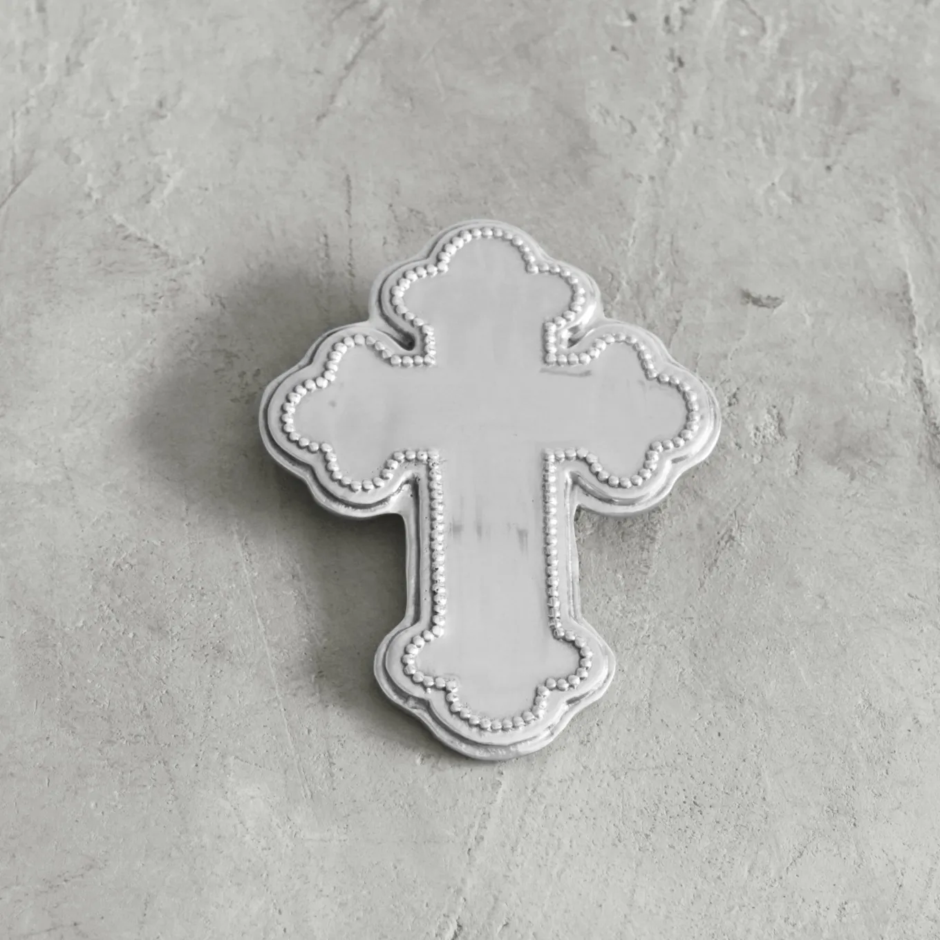 Of heirloom quality, this thoughtful keepsake makes a perfect gift for a baptism, christening or first communion. This handsome metal cross will add a distinctive decorative touch and be cherished for years to come.