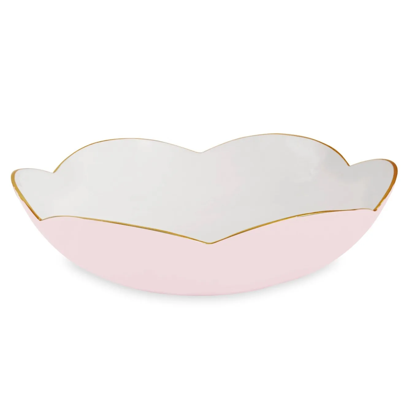 A striking statement piece for salads, sides, or fruit. The ENCANTO Amelia Large Bowl in Camellia and White combines sculptural fluted styling with a brilliant two-tone enamel finish rimmed in gold.