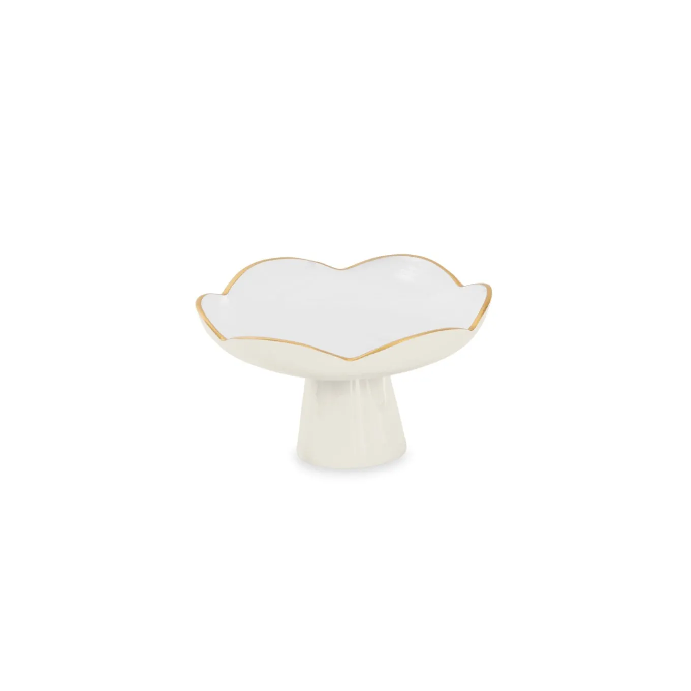Elevate mini desserts, appetizers, or sweets with the ENCANTO Amelia Small Pedestal in Cream and White. Its fluted silhouette, luminous cream-and-white enamel, and gold-tone rim make it a versatile centerpiece for everyday entertaining.