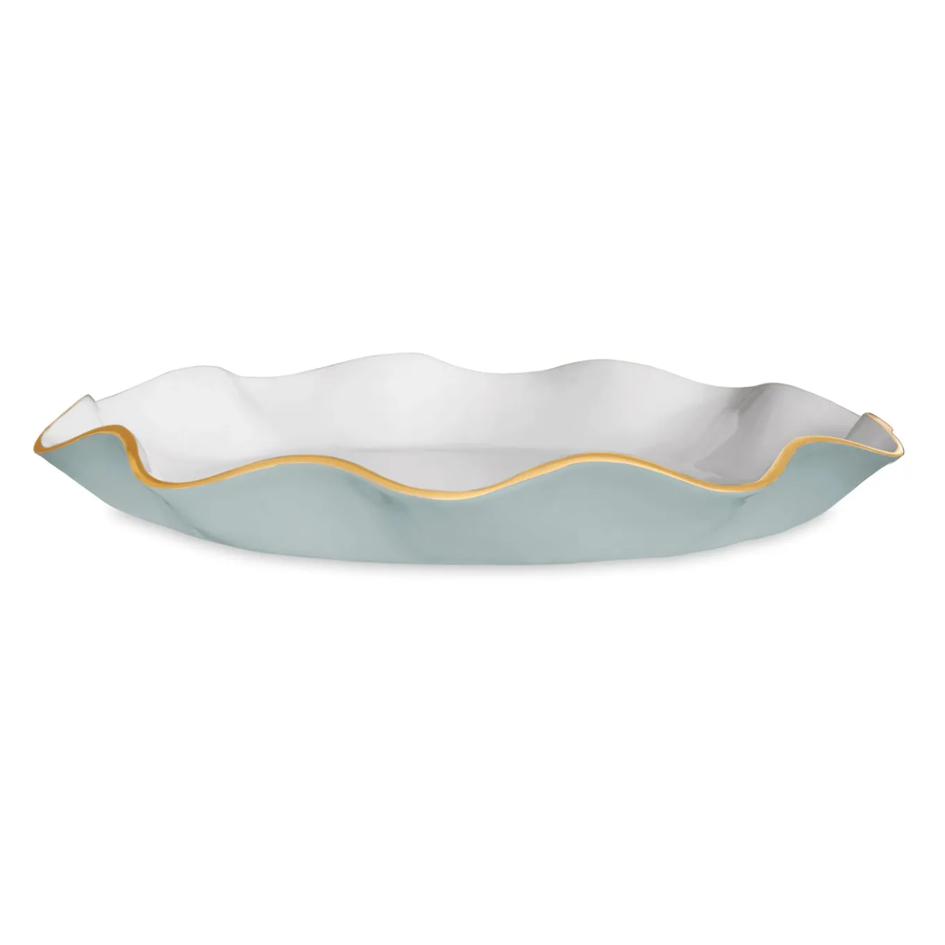 A dramatic serving platter in Slate & White, the ENCANTO Carola Large Round Platter features graceful curves, a brilliant two-tone enamel finish, and gold-tone accents. Perfect for presenting hors d’oeuvres, desserts, or a main course, it also serves as an elegant decorative statement on display.