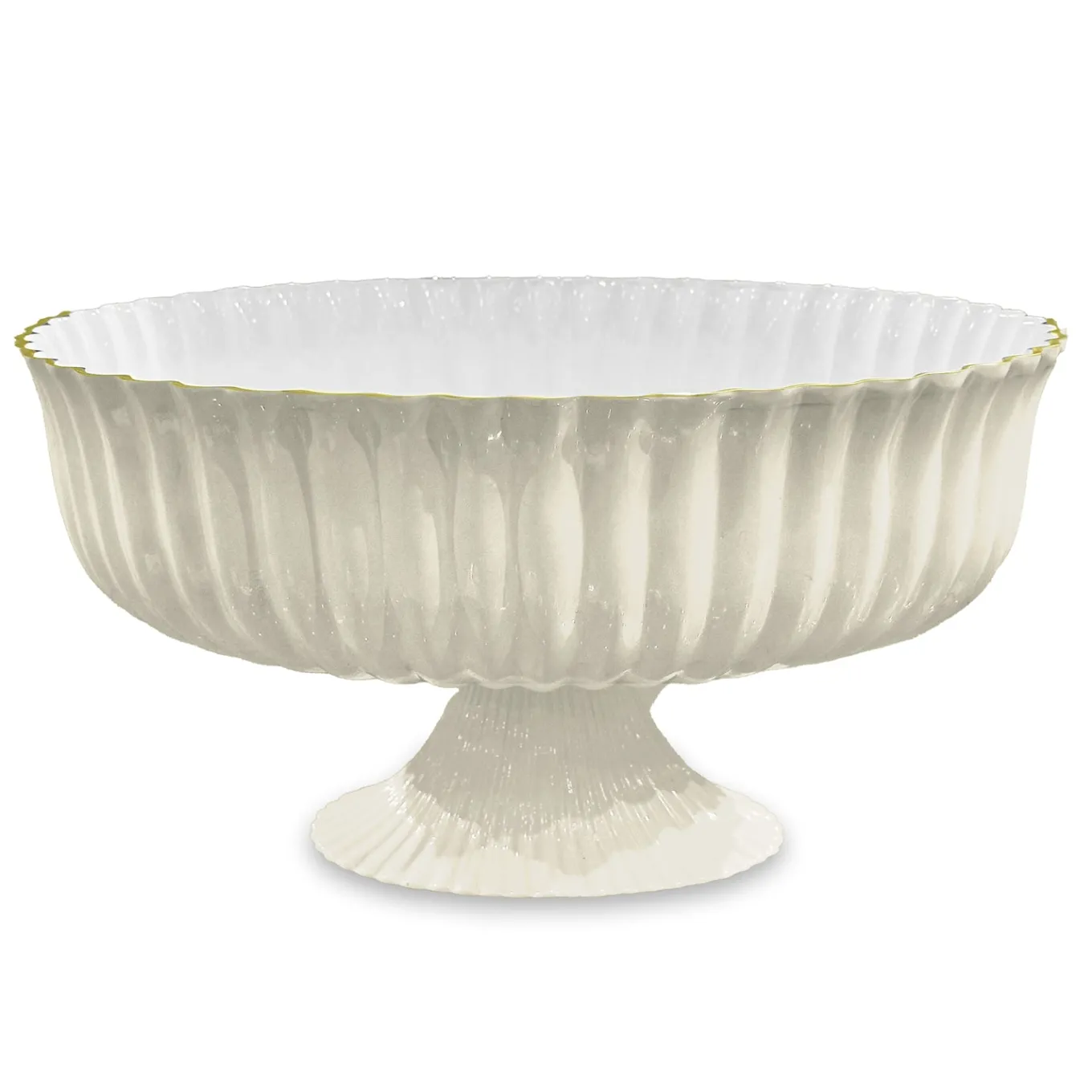 An awe-inspiring design in our bestselling colorway, the ENCANTO Vienna Large Centerpiece/Punchbowl (Cream and White) pairs timeless Viennese fluting with a luminous two-tone enamel finish and gold accents.
