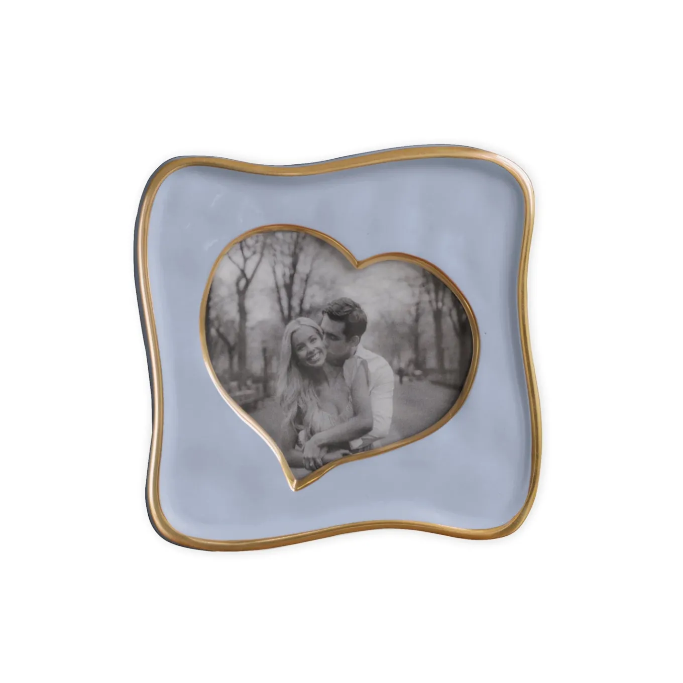 Share the love. Beatriz Ball continues to innovate and add new finishes and techniques to its handmade offerings with the multicolored ENCANTO Collection–incorporating vibrant enameled colors and gold-tone details on bowls, trays, platters, ice buckets and picture frames. Your home will be the canvas, and your paint palette pieces of delightful colors!If you’re looking for unique gift ideas for your sweetheart, consider the lovely FRAME Encanto Curved Heart 5 x 5 (Periwinkle) from Beatriz Ball. Notable for its abstract shape, and asymmetrical heart-shaped opening, this precious 5×5 inch frame is handcrafted and strikingly presented in colorfully enameled metal rimmed in gold. The Beatriz Ball photo frame makes a beautiful gift for loved ones of any age. From our GIFTABLES Collection featuring handmade and artfully designed Beatriz Ball items at irresistible prices. Packaged in a lovely gift box, the tarnish free silver frame makes an ideal heirloom gift for Valentine’s Day baby showers, birthdays, and holidays. This handsome enameled frame will add a distinctive decorative touch to any room and will be cherished for years to come.Beatriz Ball’s intensely handmade products use eco-friendly and sustainable materials and are crafted by artisans who trace a heritage of metalworking for generations. Made of a top quality, easy-care, aluminum alloy with an enamel finish. This item is for decorative purposes only.