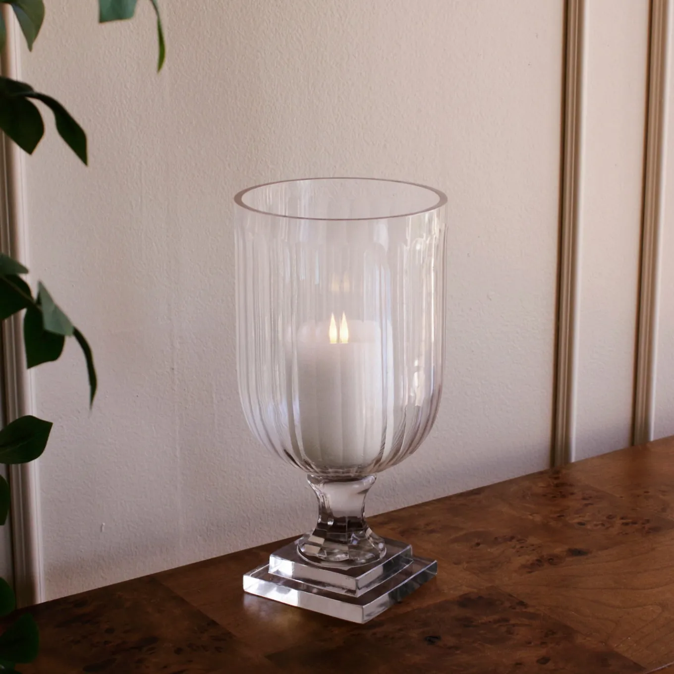 Pure simplicity with radiant appeal. The GLASS Eclat Large Hurricane in clear is hand-blown, showcasing elegant curves and timeless transparency. Stunning with a candle or floral arrangement, it adds effortless sophistication to any table, mantel, or console.