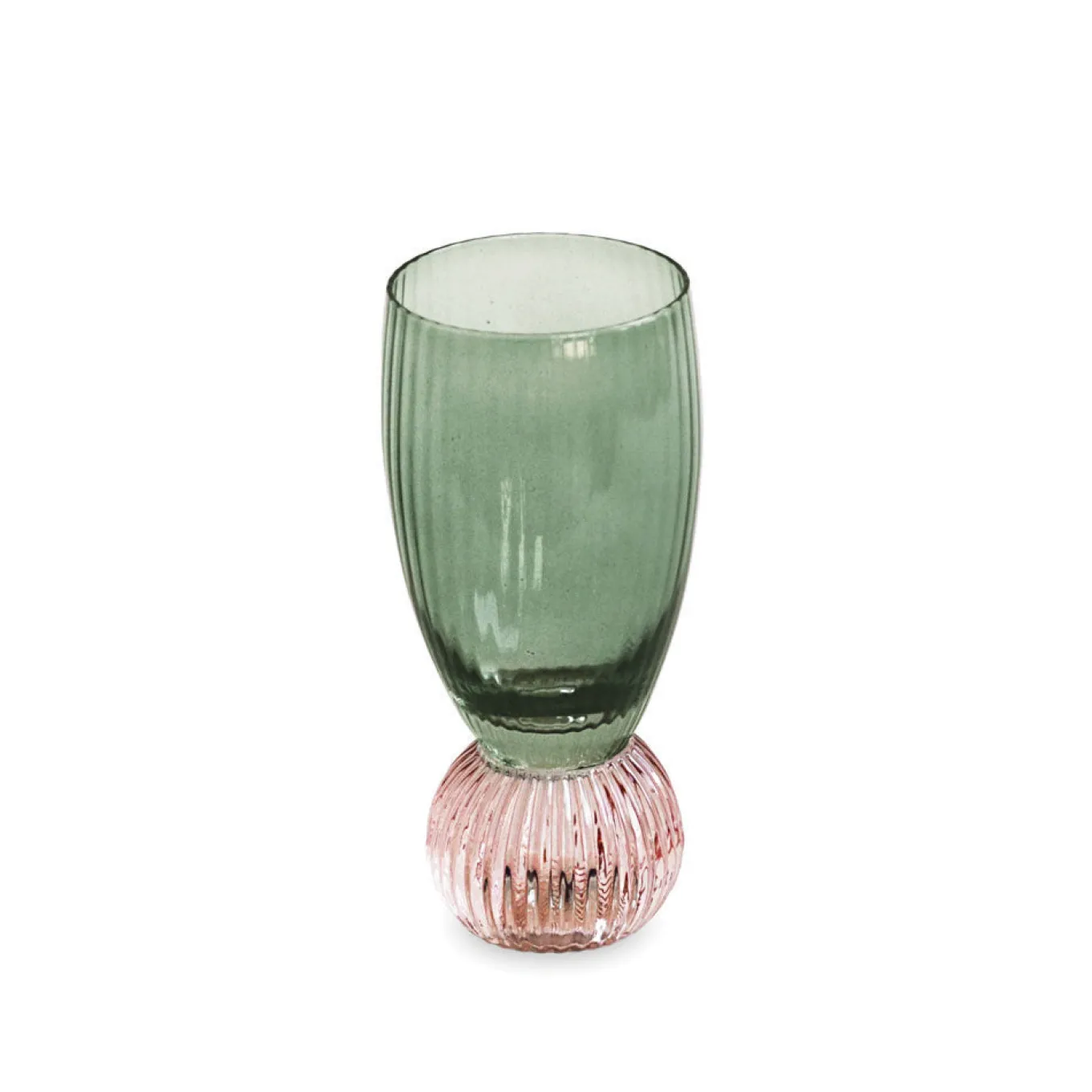 Salud! Beautifully fluted, featuring lustrous colors and a spherical base, our GLASS Venice Shot Glass Set of 4 (Green and Lavender) adds sparkle to any bar or tablescape. Hand painted glass with a watercolor luster and brilliance enhances any sip. Great for tequila! Made exclusively for Beatriz Ball. Hand wash with soft sponge and mild detergent using lukewarm water; wipe dry with soft cloth.