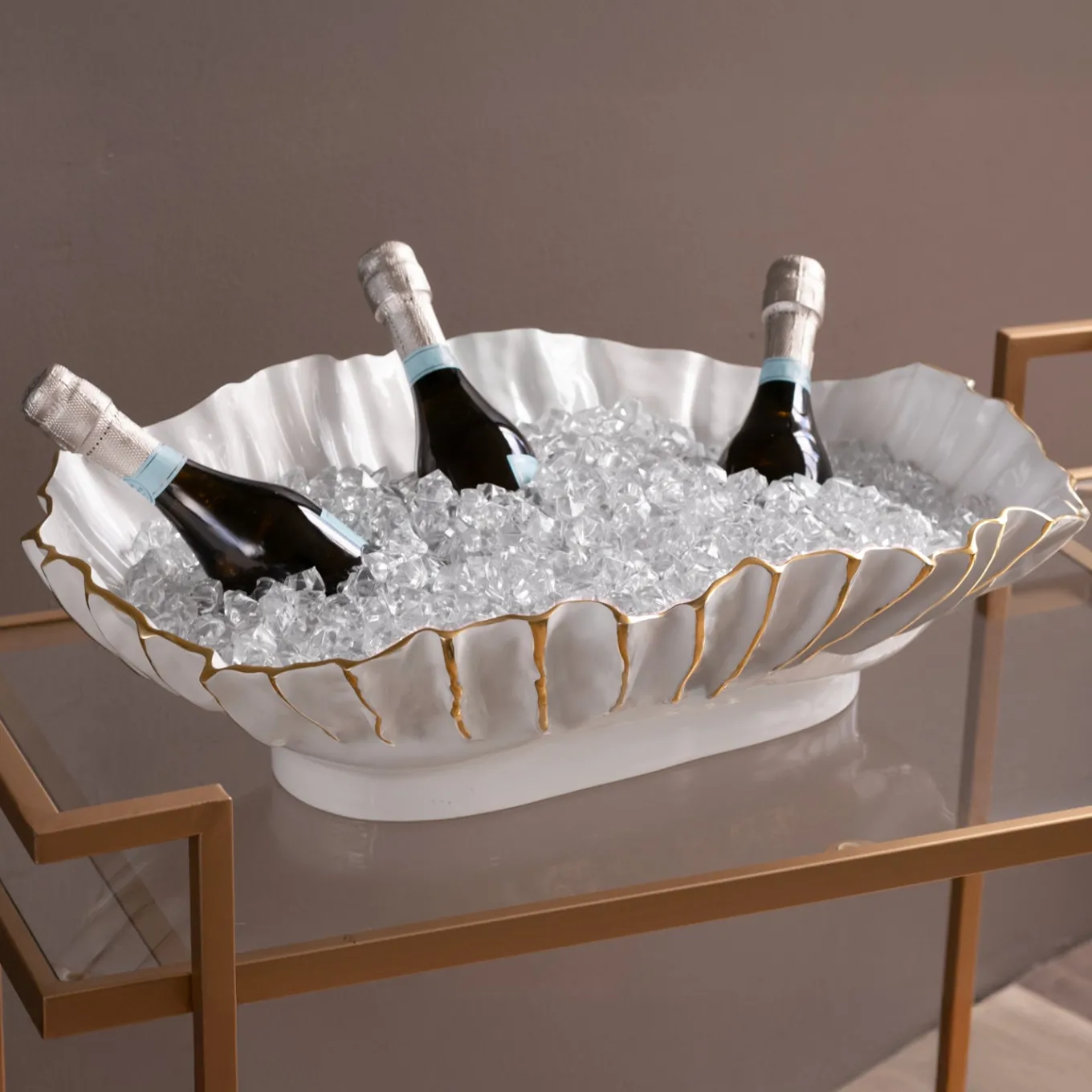 Organic luxe! Beatriz Ball continues her collaboration with Louisiana-based ceramicist Gretchen Murchison with the vibrant THANNI Mystic Collection. Inspired by natural forms, the THANNI Mystic Extra Large Oval Bowl (White and Gold) is rippling, flowing and organic. The dynamic oval design features white enamel that’s trimmed in a brilliant gold tone, creating a bowl that combines beauty, artistry and functionality. This deep oval design is perfect for fresh fruit and salads. Makes a great centerpiece or ice bucket! Fabulous gift item for brides, and perfect for anyone who loves to entertain or decorate. On trend, the bowl adds artistry, grace and sophistication to any setting. Beatriz Ball’s intensely handmade products use eco-friendly and sustainable materials and are crafted by artisans who trace a heritage of metalworking for generations. Made of a top quality, easy-care, aluminum alloy with a food safe enamel finish. Dishwasher safe.