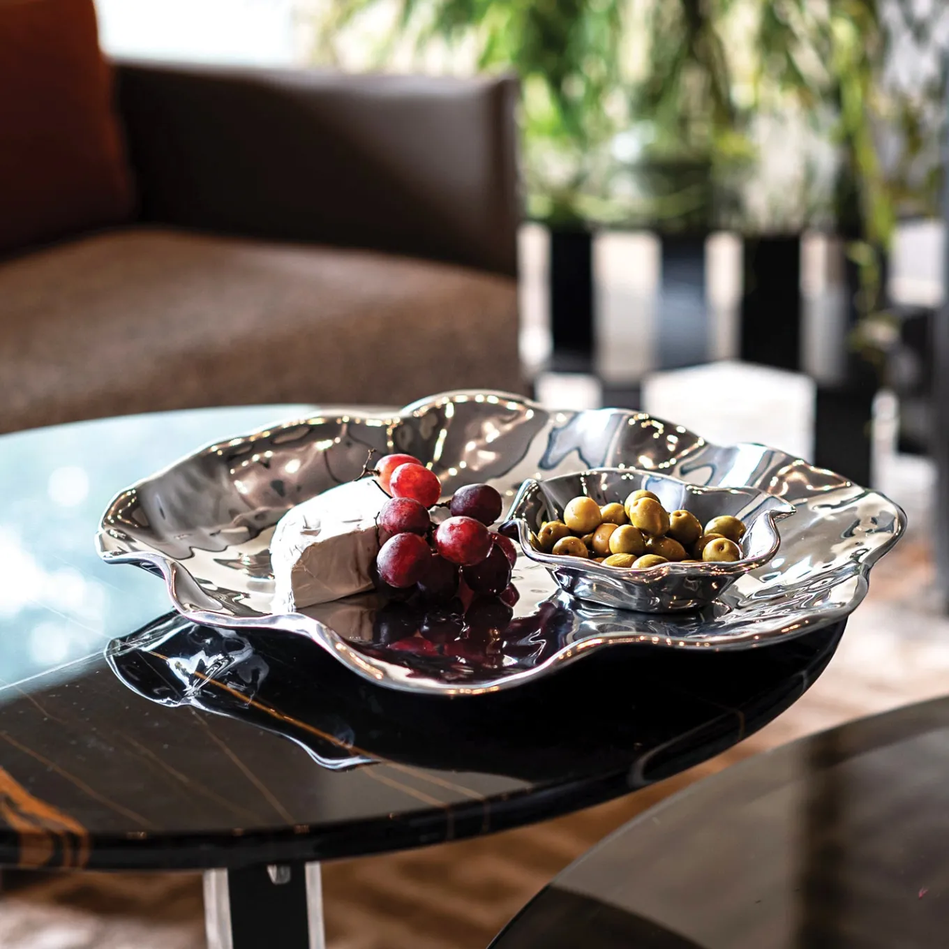 The eye-catching two-parter in gleaming metal offers stylish design, and elegant practicality.