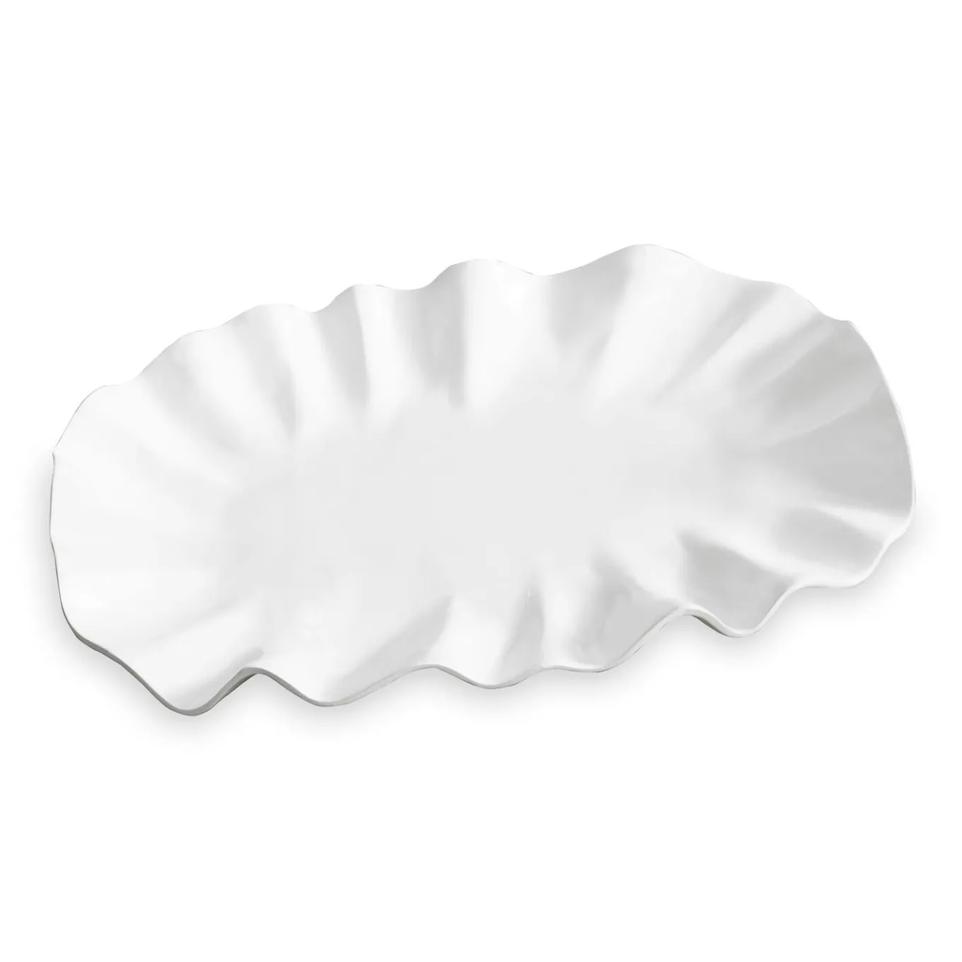 The Bloom Collection, a collaboration between Beatriz Ball and Louisiana-based ceramicist Gretchen Murchison, contains sculptural bowls and platters inspired by floral and botanical forms. Presented in luxury melamine, the Bloom pieces are beautiful as well as functional. A case in point is the VIDA Bloom Large Oval Platter (White) in luxury melamine. With rippling petal-like movement, the dynamically designed serving platter combines beauty, artistry and functionality. Perfect for serving a variety of foods in style, the sensational design will elevate any gathering. Presented in a glistening white melamine with the look of ceramics. Dishwasher safe (top rack), heavy-weight, food safe, BPA and PABA free.