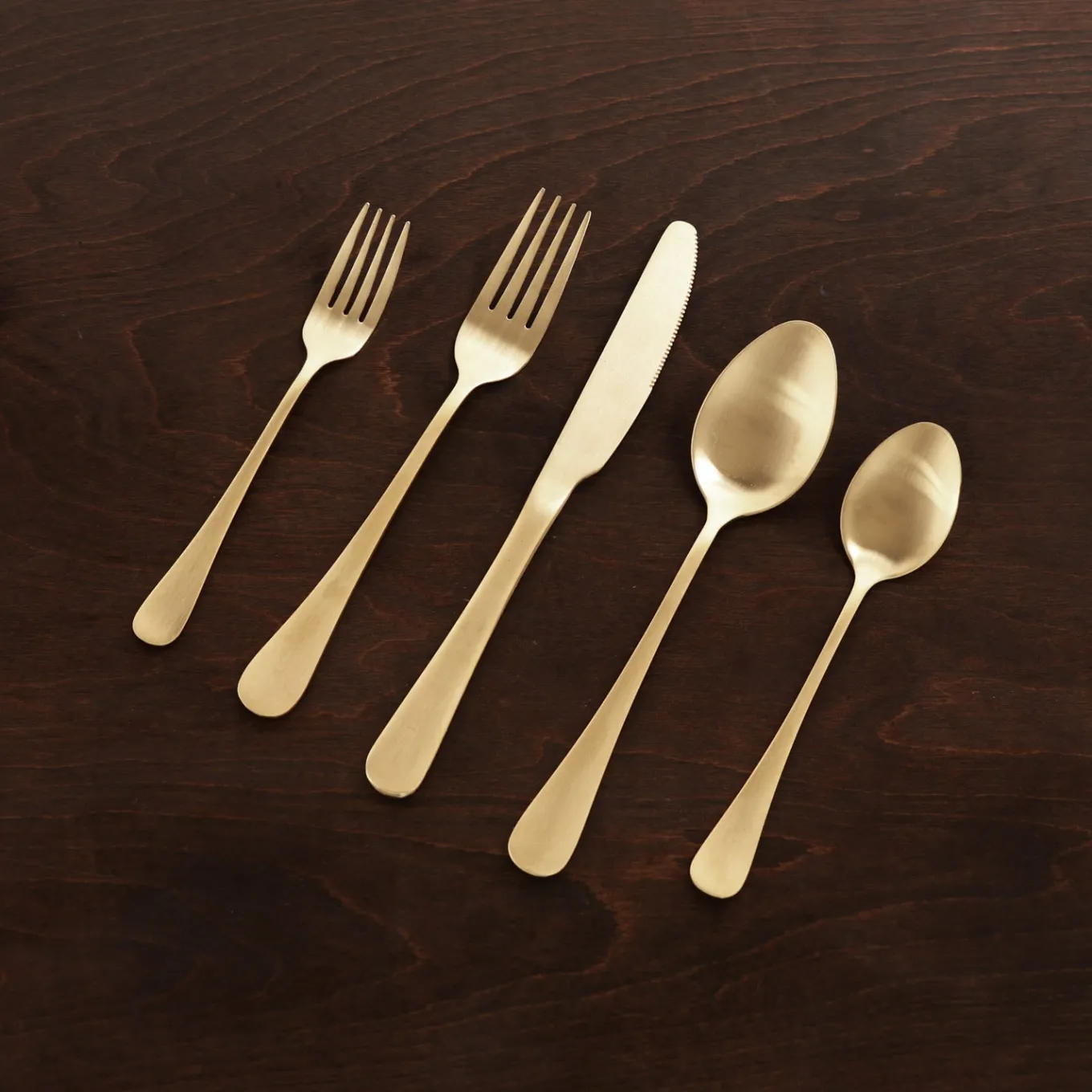 VIDA Droplet Stainless Flatware Set of 5 (Full Brushed Champagne Gold)